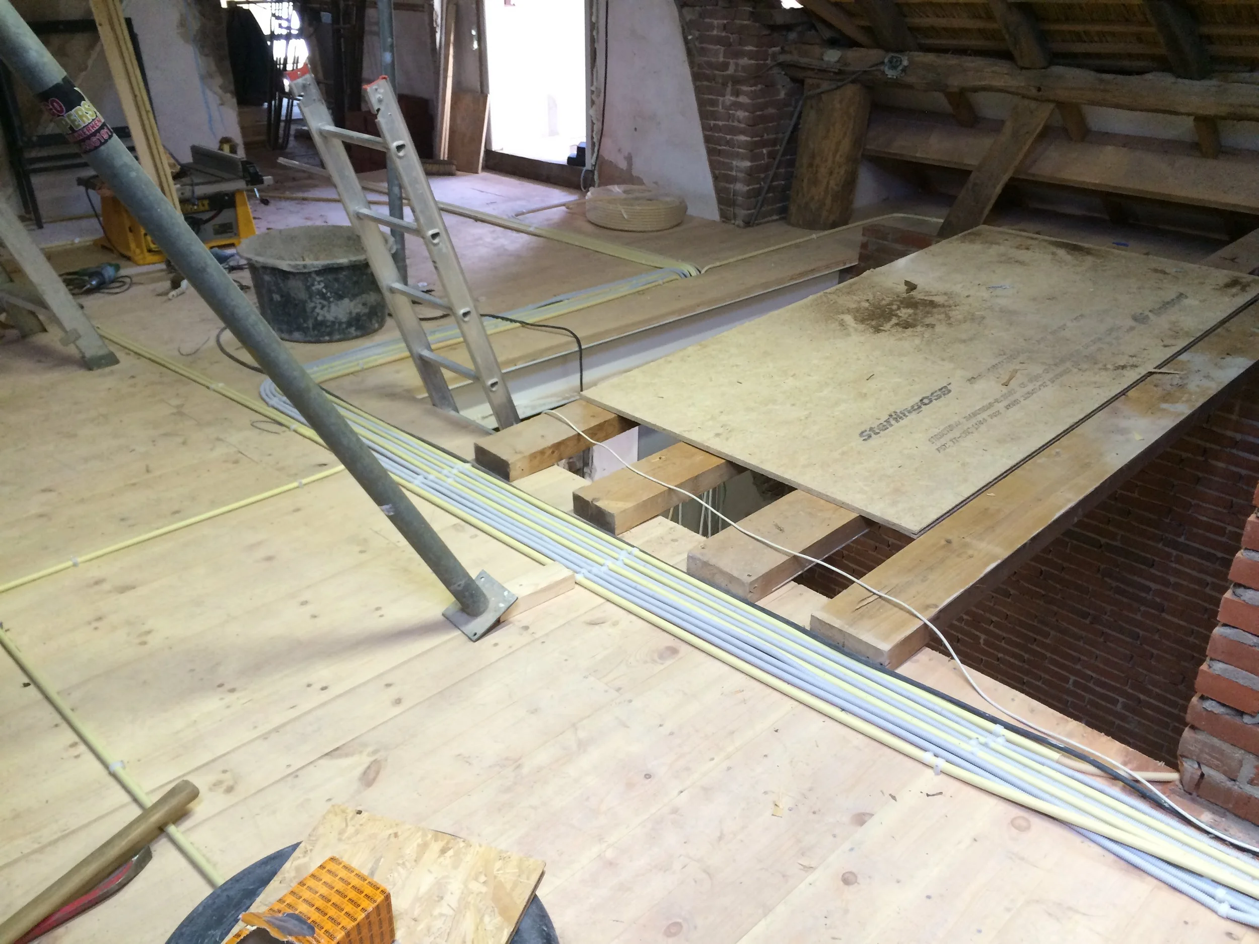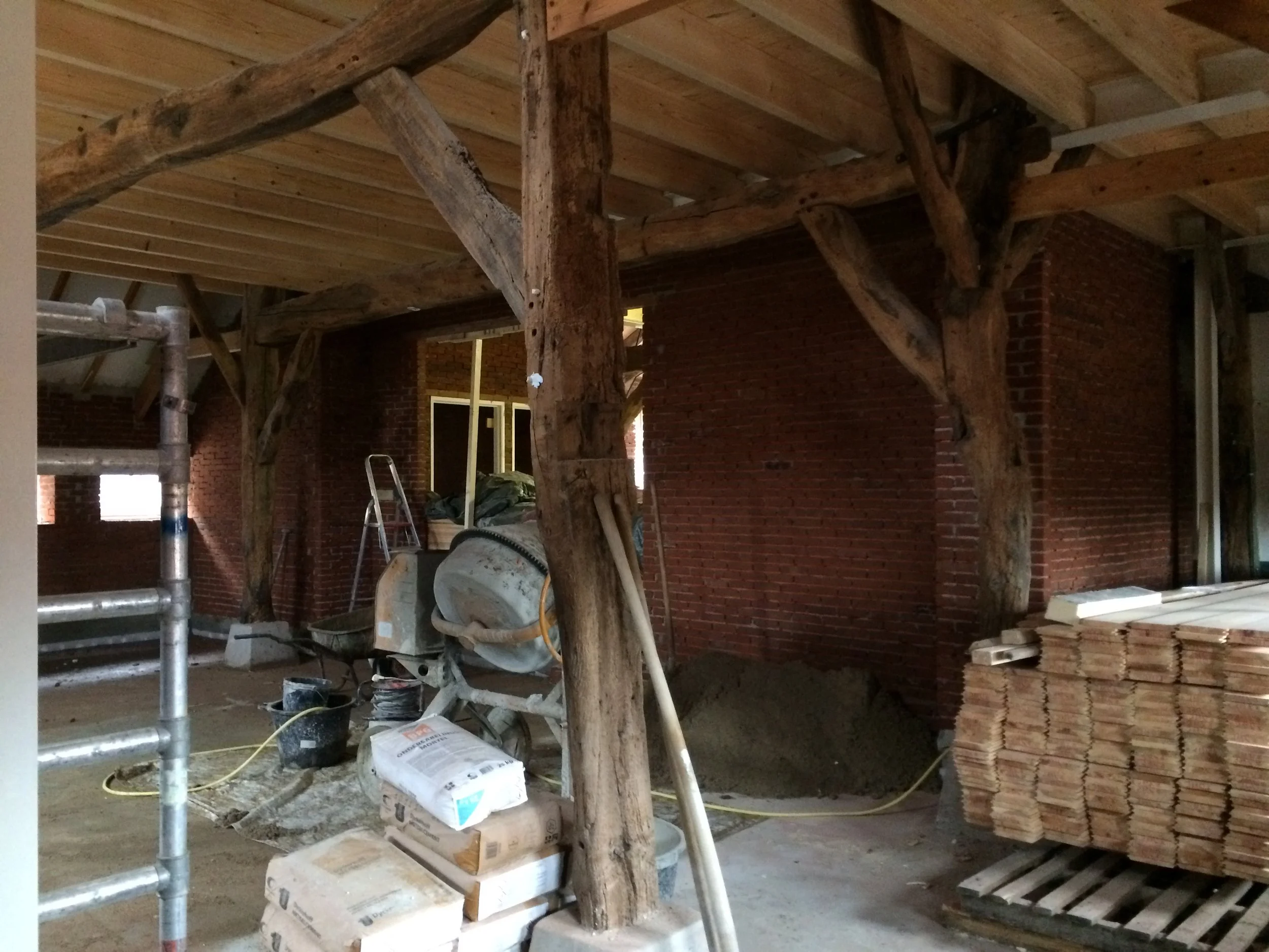 We decided not to place metal stud walls but we choose brick walls. Real genuine walls that the farm deserves. In such an old house we did not want to work with too much artificial products, but with real wood, bricks and genuine products. When the metal beams were placed we could also start with the new first floor construction.
