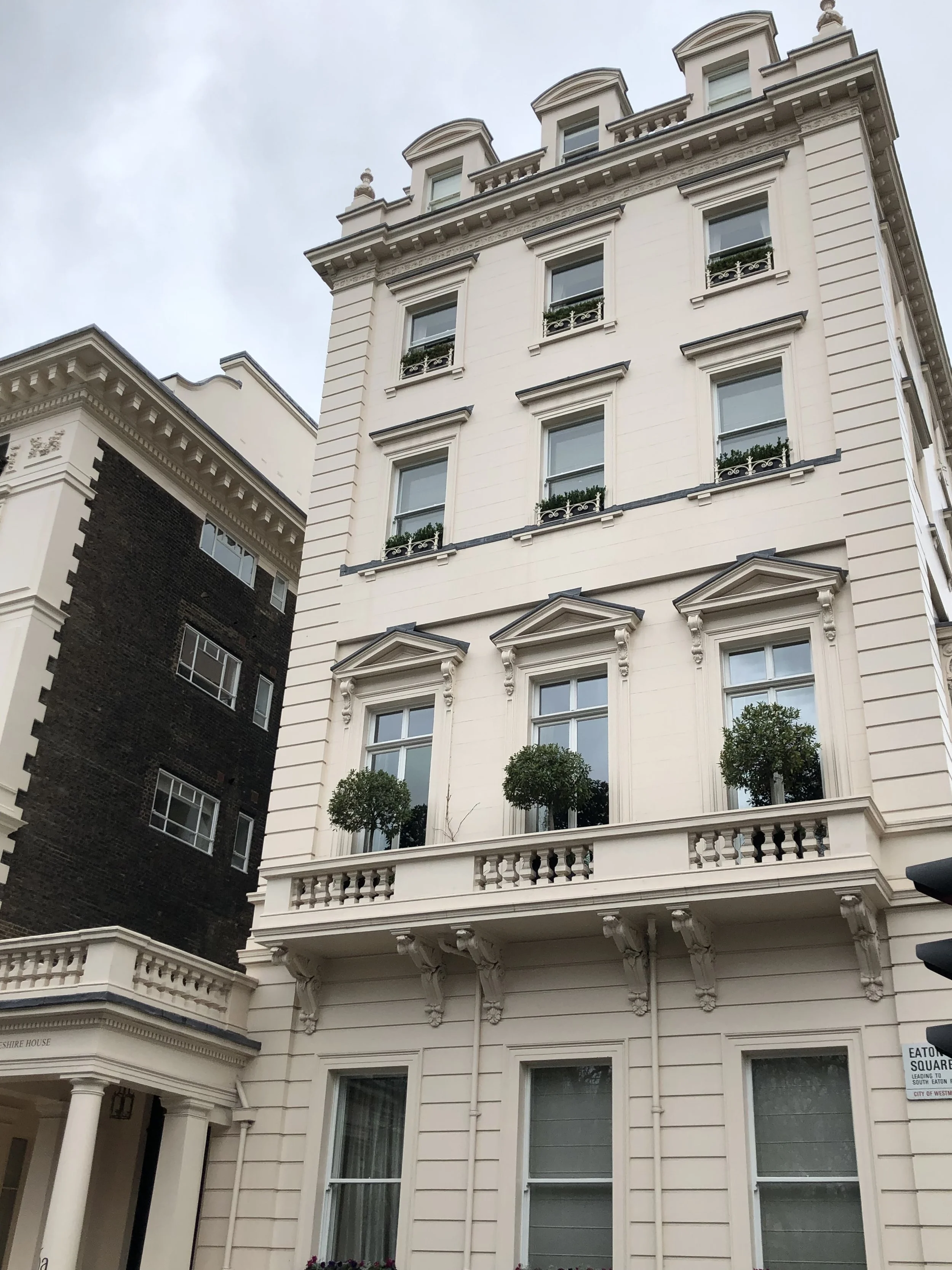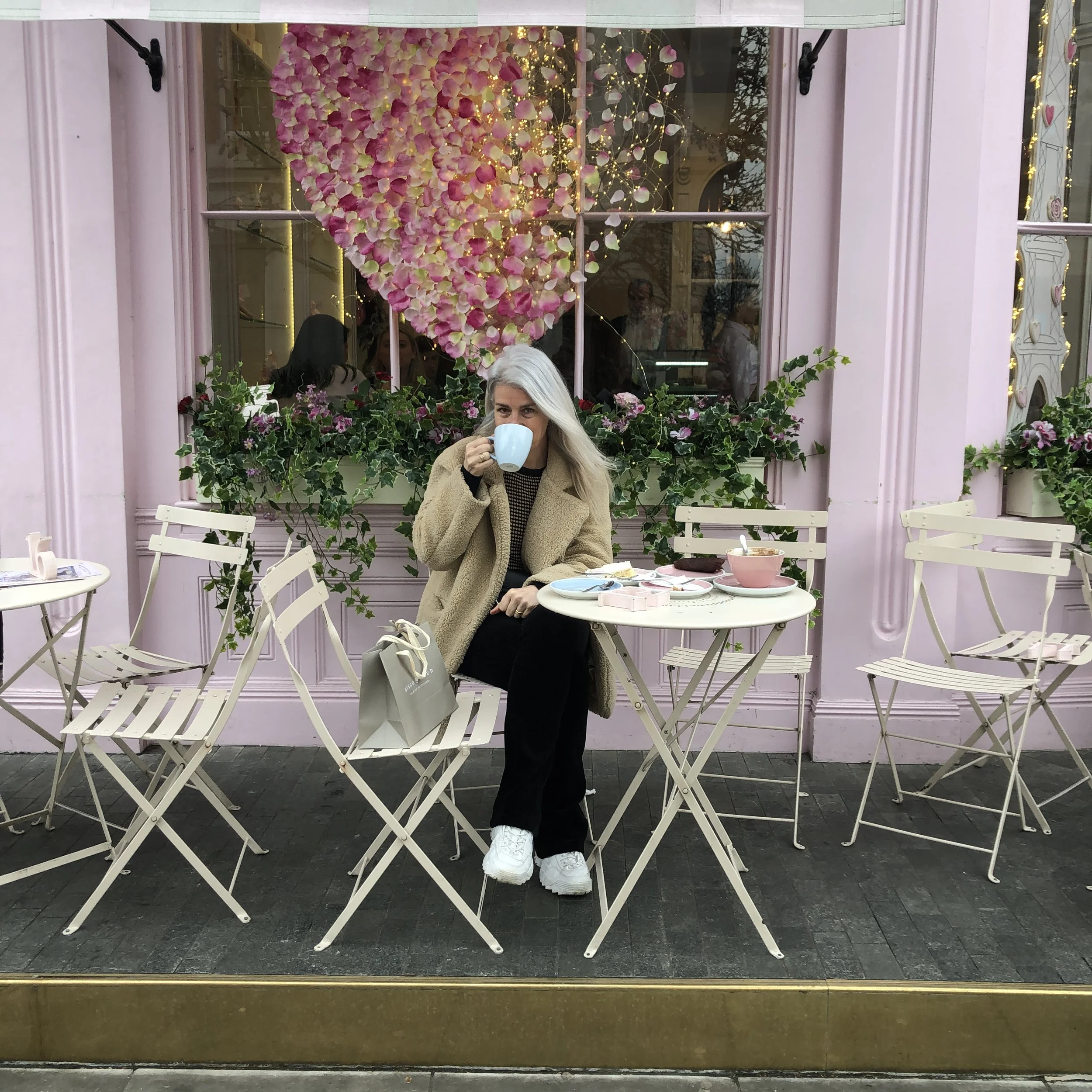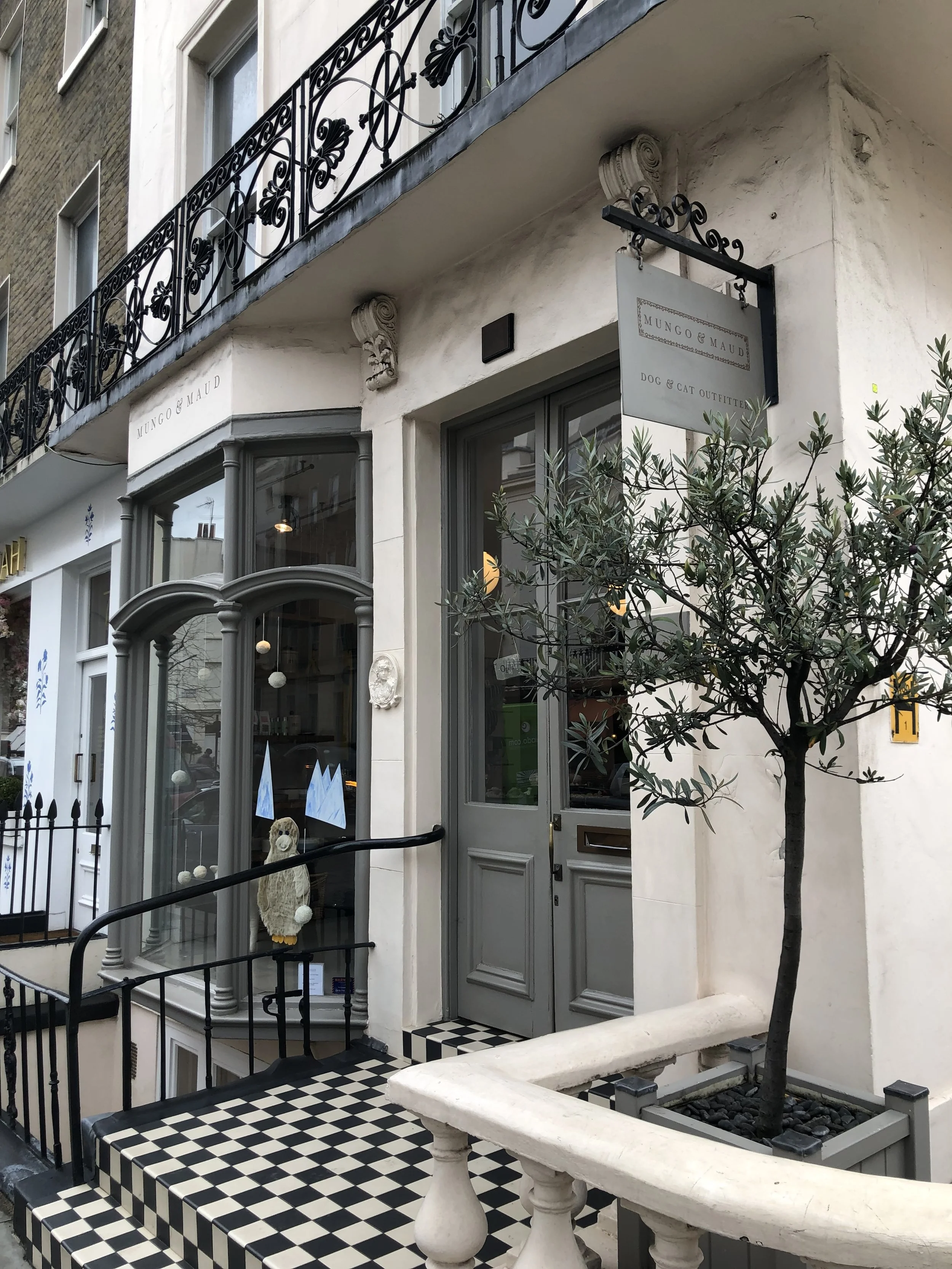 The next day we decided to have breakfast in the neighbourhood before walking to Peggy Porschen on Elisabeth Street. We went to Colbert on Sloane Square, it felt like a parisian style brasserie. The walk to Peggy Porschen, the pink colored cafe, was through beautiful Belgravia. Lovely architecture from the majestic white buildings contrasting with the green of the parks and small gardens. Also Elisabeth street is very nice to stroll around, a lovely street with small shops and cafe’s. I loved the entree of the Moyses Stevens flowershop, another flower wall. We also visited Mungo & Maud, a lovely dog and cat outfitters shop. We bought some biscuits for our labrador, Bram.